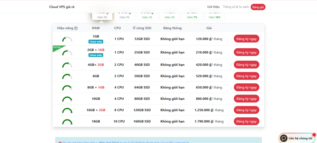- Đối tượng phù hợp: Các dự án mới cần một cấu hình VPS mạnh mẽ nhưng muốn tối ưu chi phí ban đầu.