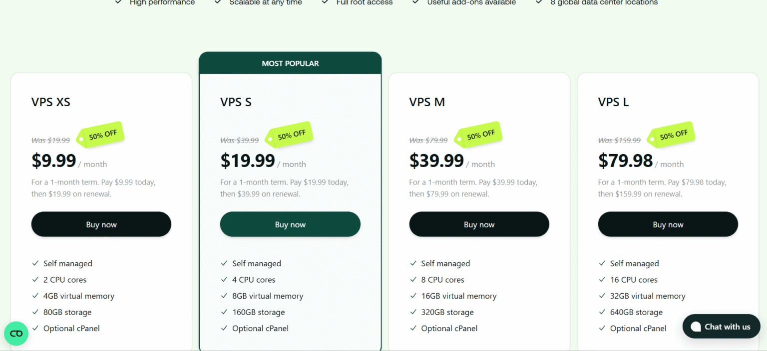 - VPS Hosting: Bao gồm cả Managed VPS (có quản trị) và Unmanaged VPS (toàn quyền tự cài đặt), phù hợp cho các dự án cần tài nguyên riêng và khả năng tùy chỉnh cao.
