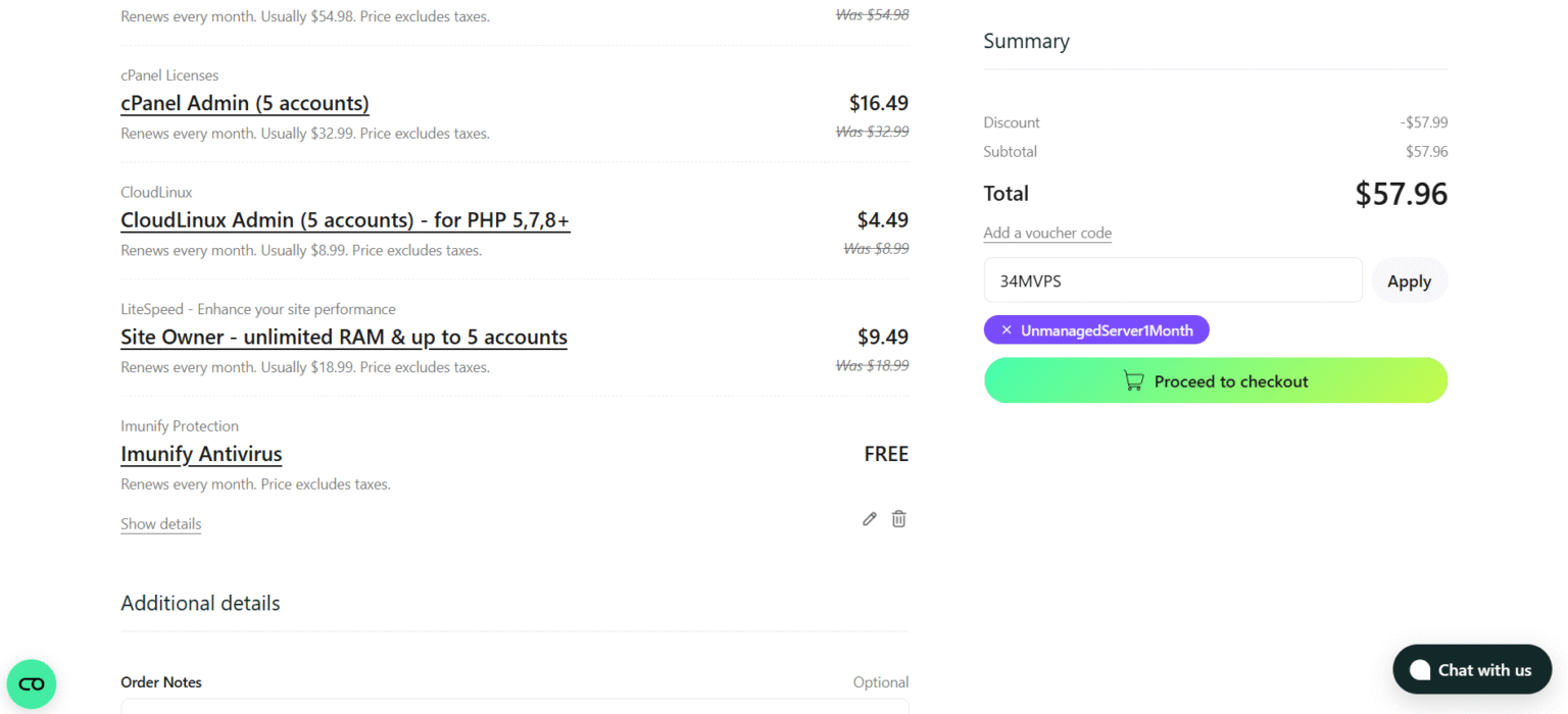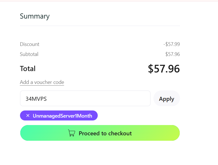 Tại trang Checkout (Thanh toán), bạn sẽ thấy một ô có nhãn “Promo Code” hoặc “Coupon Code”. Hãy nhập mã giảm giá mà bạn đã tìm được (ví dụ: FAST-7-380-36, WPRESS, 34MVPS…) vào ô này. Sau khi nhập, hệ thống sẽ tự động áp dụng chiết khấu và hiển thị mức giá mới ngay lập tức trong tổng đơn hàng của bạn. Hãy kiểm tra kỹ để đảm bảo ưu đãi đã được áp dụng thành công.