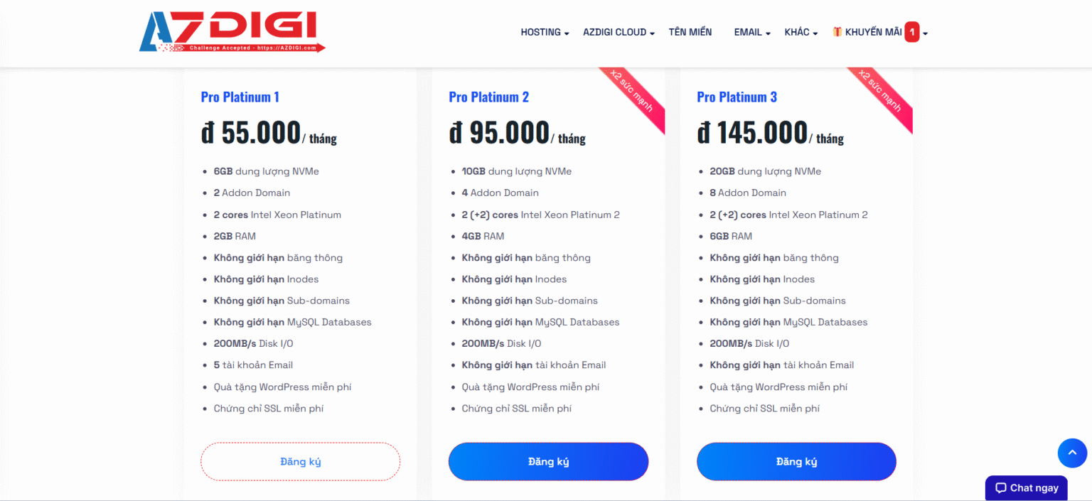 Dòng hosting cho website cá nhân và doanh nghiệp nhỏ (AZ Pro & Pro Platinum)