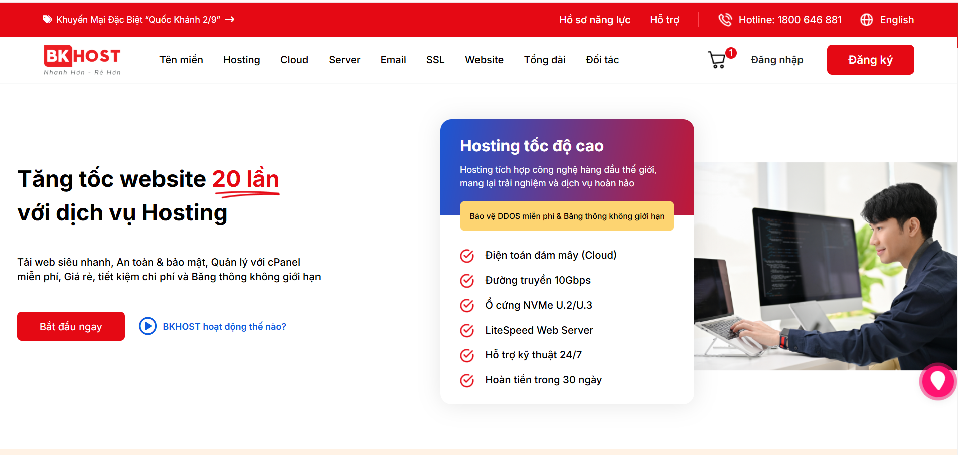 - Truy cập trang chủ BKHOST: Tôi vào vai một khách hàng thực thụ.