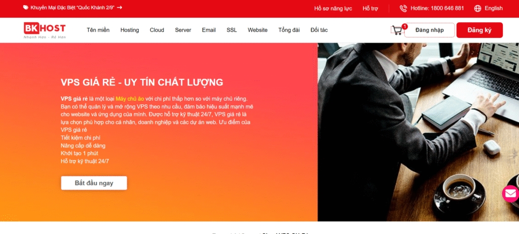 Đầu tiên, hãy truy cập vào trang web chính thức của BKHOST. Dựa trên nhu cầu của bạn, hãy chọn dịch vụ muốn đăng ký, ví dụ như Web Hosting, Cloud VPS, hoặc Dedicated Server.
