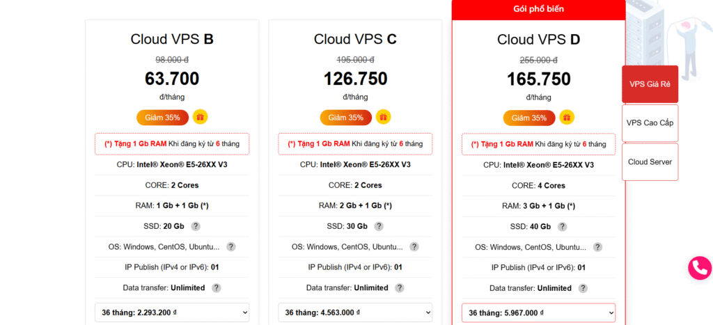Lời khuyên từ tôi: Tương tự hosting, đăng ký VPS dài hạn sẽ giúp bạn tiết kiệm nhiều hơn. Nếu bạn chắc chắn về dự án của mình, hãy cân nhắc đăng ký 24-36 tháng để nhận mức giảm cao nhất.