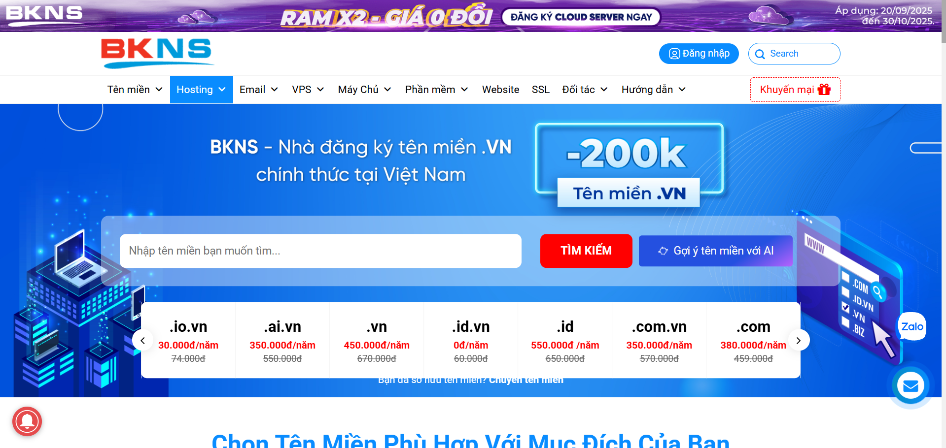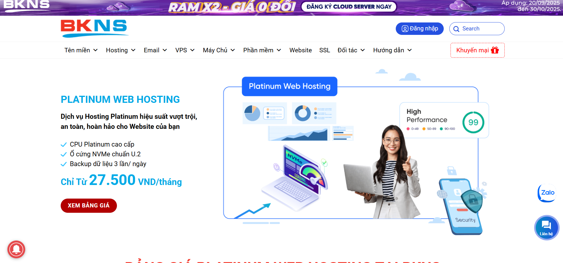 Qua các chương trình khuyến mãi mà BKNS thường xuyên triển khai, có thể thấy họ rất chú trọng đến việc mang lại giá trị cho khách hàng, đặc biệt là thông qua các ưu đãi hấp dẫn vào các dịp lễ lớn hoặc theo mùa. Ví dụ như chương trình “SALE TƯNG BỪNG MỪNG ĐẠI LỄ” với mức giảm 50% cho đơn hàng mới và tặng thêm 100.000 VNĐ vào tài khoản, hay chương trình “ĐÓN THU SANG” với ưu đãi nhân đôi RAM miễn phí cho Cloud Server. Điều này cho thấy BKNS không chỉ cung cấp dịch vụ mà còn liên tục tìm cách hỗ trợ khách hàng tối ưu chi phí đầu tư.