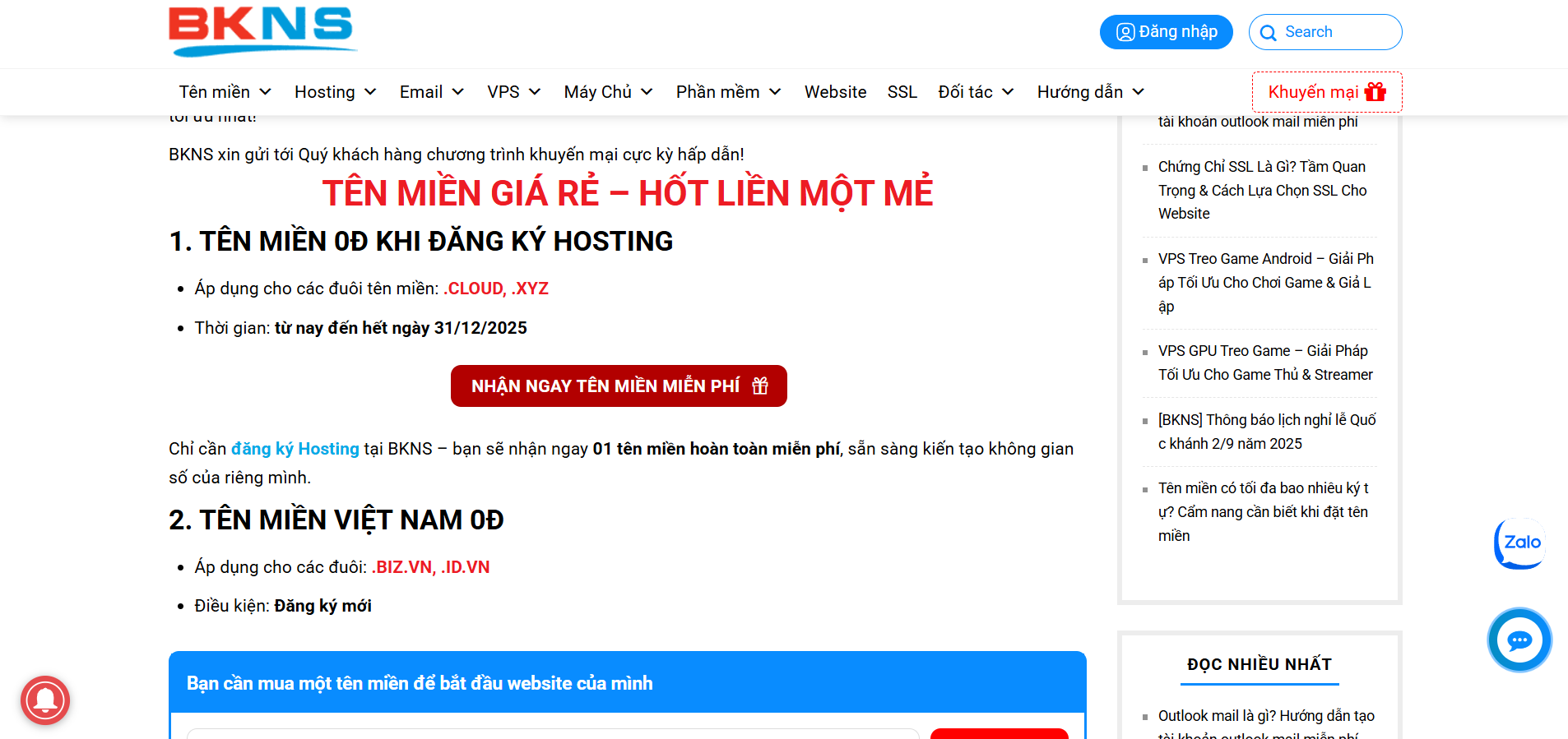 • Khuyến mãi tên miền: Các chương trình giảm giá hoặc tặng kèm tên miền. Ví dụ, “TÊN MIỀN GIÁ RẺ – HỐT LIỀN MỘT MẺ” nhân dịp Quốc khánh 2/9.
