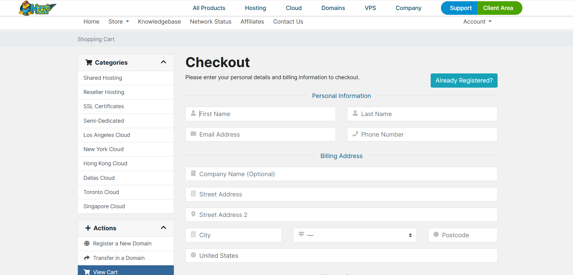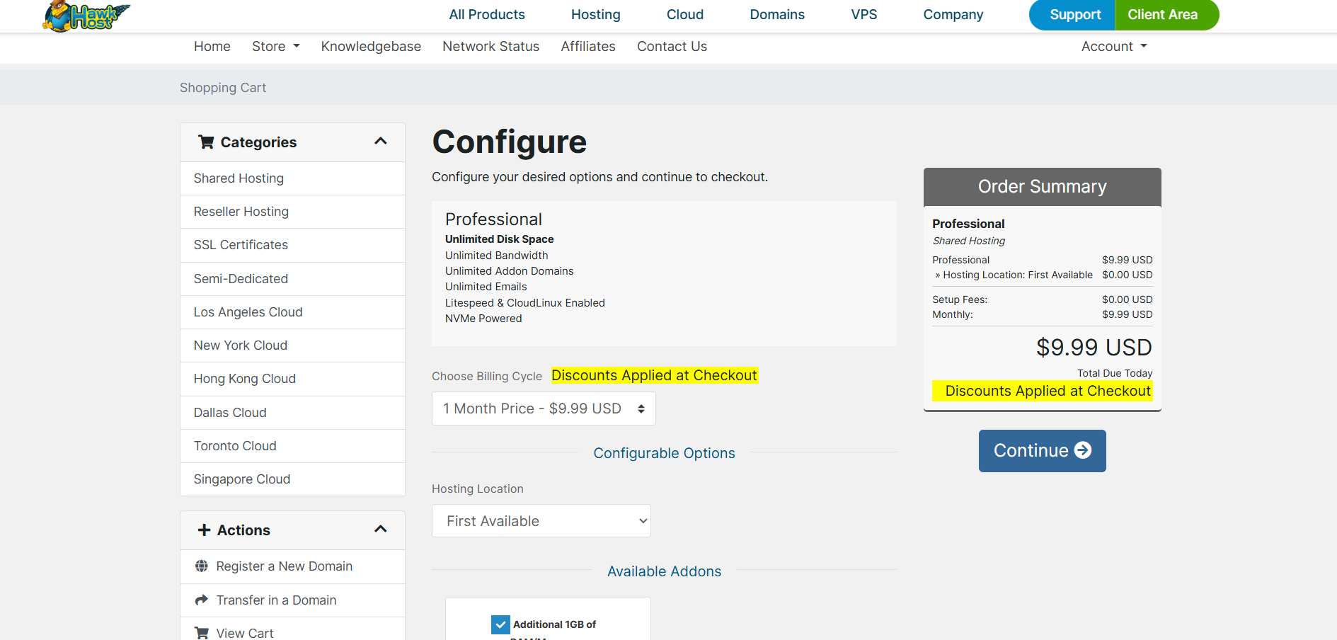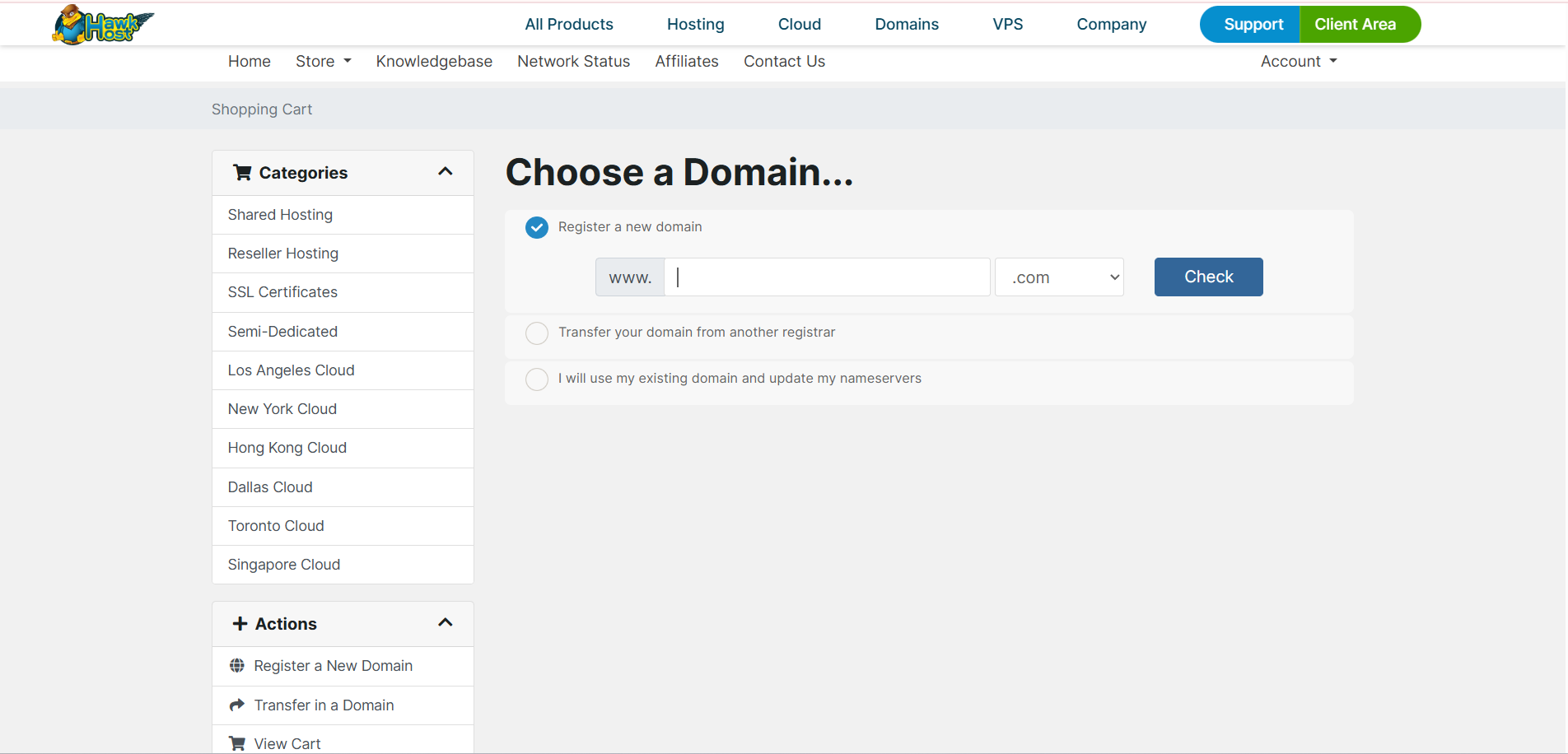 Truy cập website của Hawk Host và chọn gói dịch vụ (Shared Hosting, Reseller, Semi-Dedicated) mà bạn muốn mua.