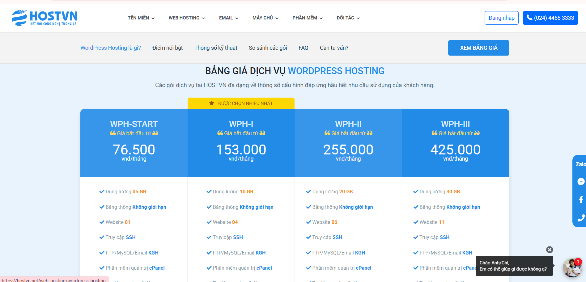- Lưu trữ web: Web Hosting (Shared Hosting Linux/Windows), WordPress Hosting.