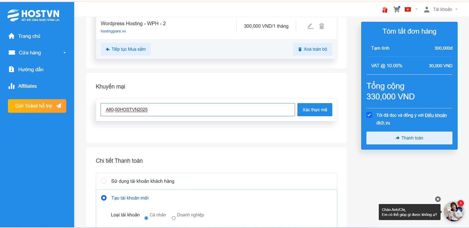 Hướng dẫn chi tiết cách áp dụng mã giảm giá tại HostVN