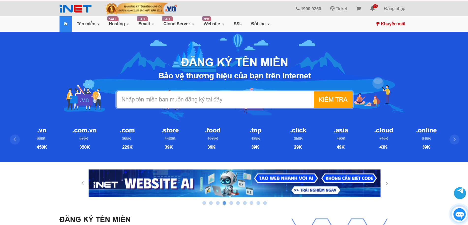 Sở hữu một tên miền chuyên nghiệp là bước đầu tiên để xây dựng sự hiện diện trên internet. iNET thường xuyên có các chương trình giá tốt, đặc biệt cho năm đăng ký đầu tiên.