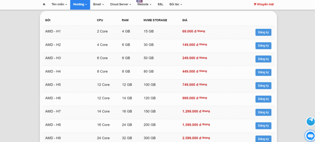 • Tên miền: Cung cấp đầy đủ các loại tên miền quốc gia (.vn, .com.vn, .io.vn) và tên miền quốc tế (.com, .net, .org), cùng các dịch vụ đi kèm như đăng ký mới, gia hạn, chuyển đổi, backorder và sàn giao dịch tên miền.