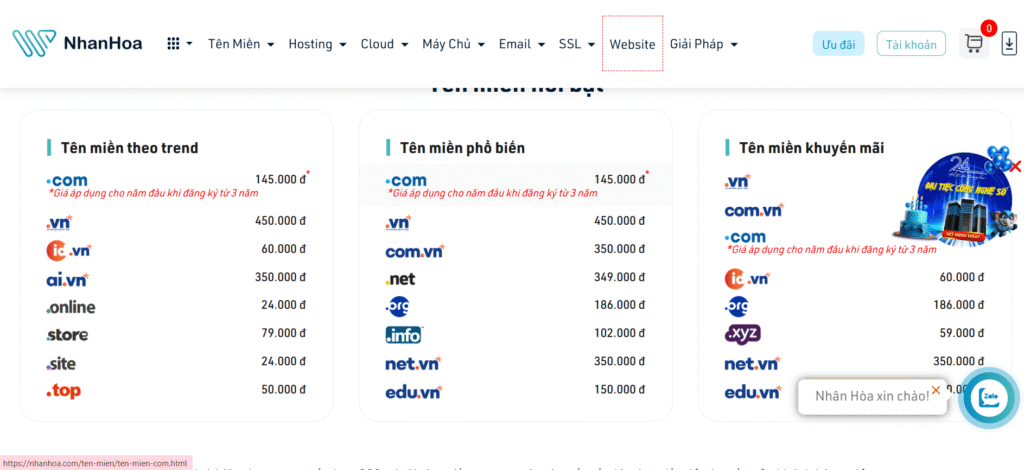 Nhân Hòa luôn có chính sách giá rất cạnh tranh cho tên miền, đặc biệt là trong các dịp khuyến mãi lớn.