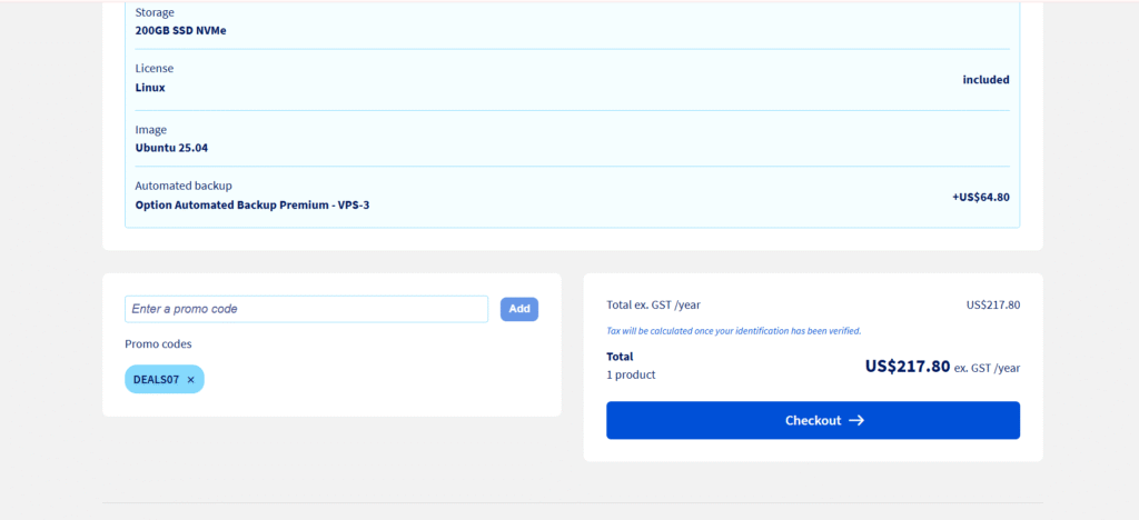 Khi bạn đã thêm dịch vụ vào giỏ hàng và tiến hành thanh toán, trên trang checkout sẽ có một mục rõ ràng để bạn nhập mã giảm giá (thường được ghi là “Promotional Code”, “Coupon Code” hoặc “Voucher”). Hãy nhập chính xác mã bạn có vào ô này.