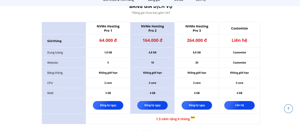 - Ưu đãi: Mỗi gói bao gồm tên miền, hosting, SSL và Email Pro với mức giá tiết kiệm đến 70% so với mua lẻ.