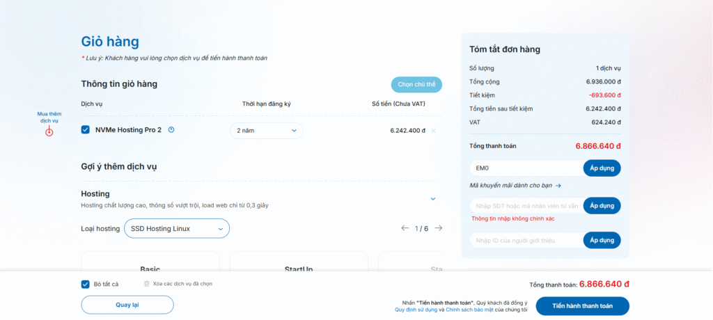 Bước 1: Chọn dịch vụ và thêm vào giỏ hàng