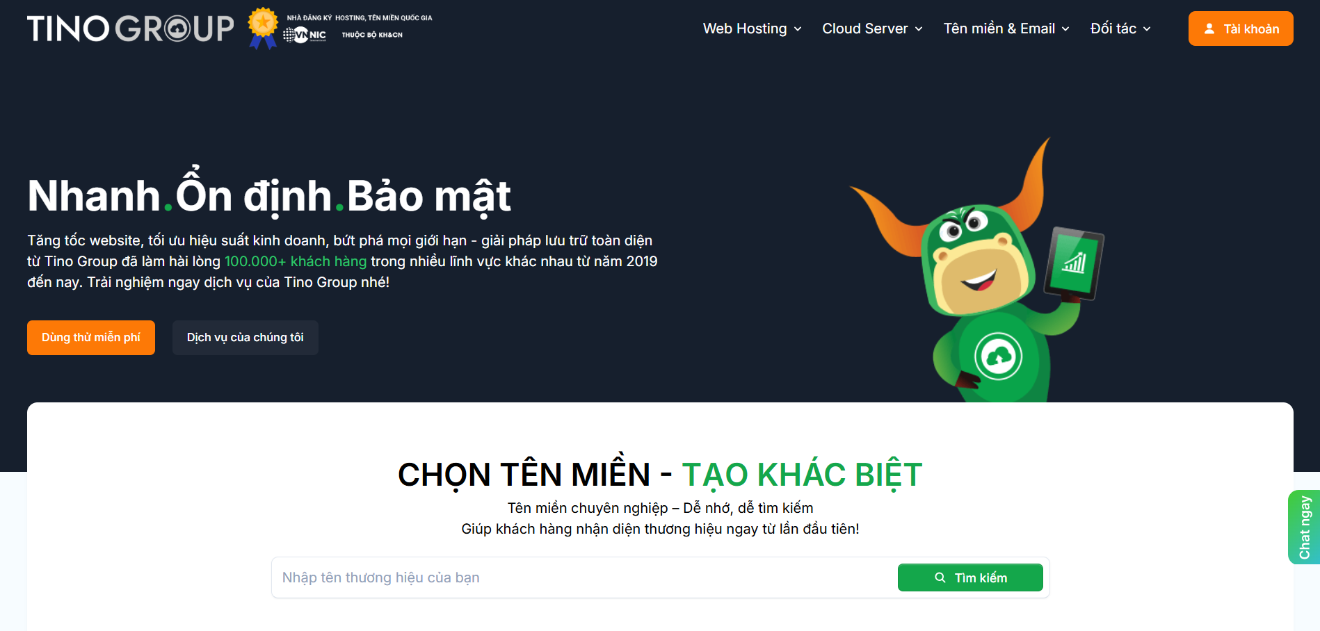 Tinohost là một thương hiệu trực thuộc Tino Group, chính thức ra mắt thị trường vào năm 2019. Dù là một cái tên tương đối mới so với các “ông lớn” đã có thâm niên, Tinohost đã nhanh chóng tạo dựng được chỗ đứng vững chắc nhờ chiến lược phát triển tập trung vào tốc độ, sự ổn định và dịch vụ hỗ trợ khách hàng tận tâm.
