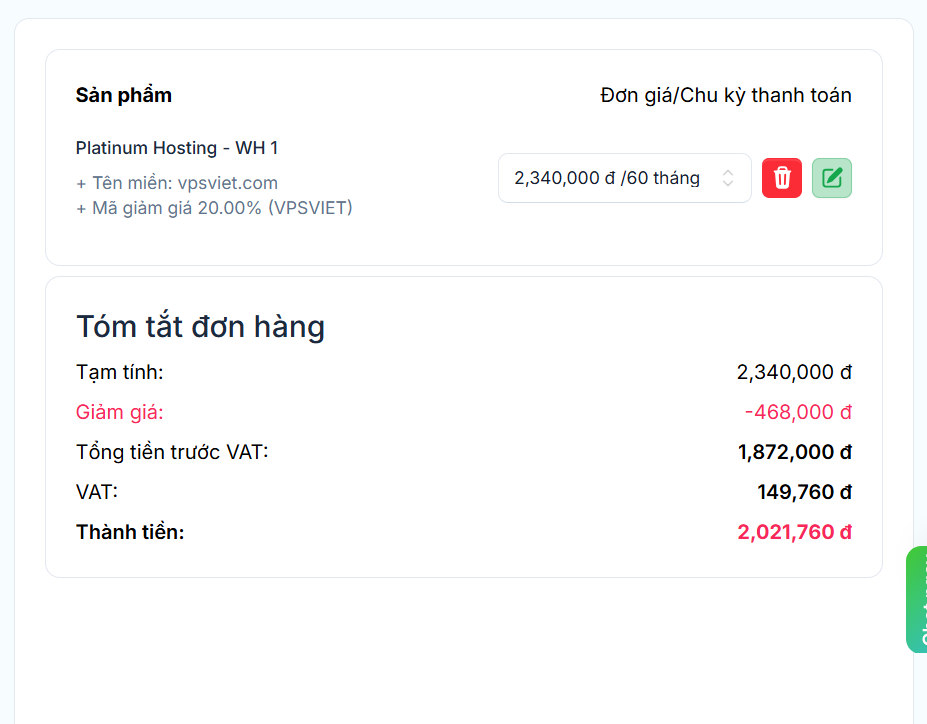 Mã khuyến nghị: VPSNVME20 (Giảm 20% cho tất cả các gói VPS).