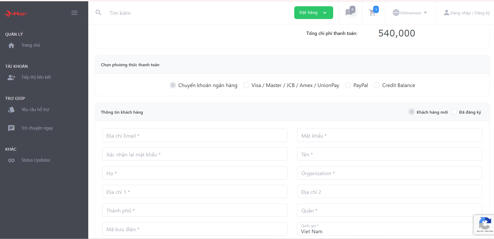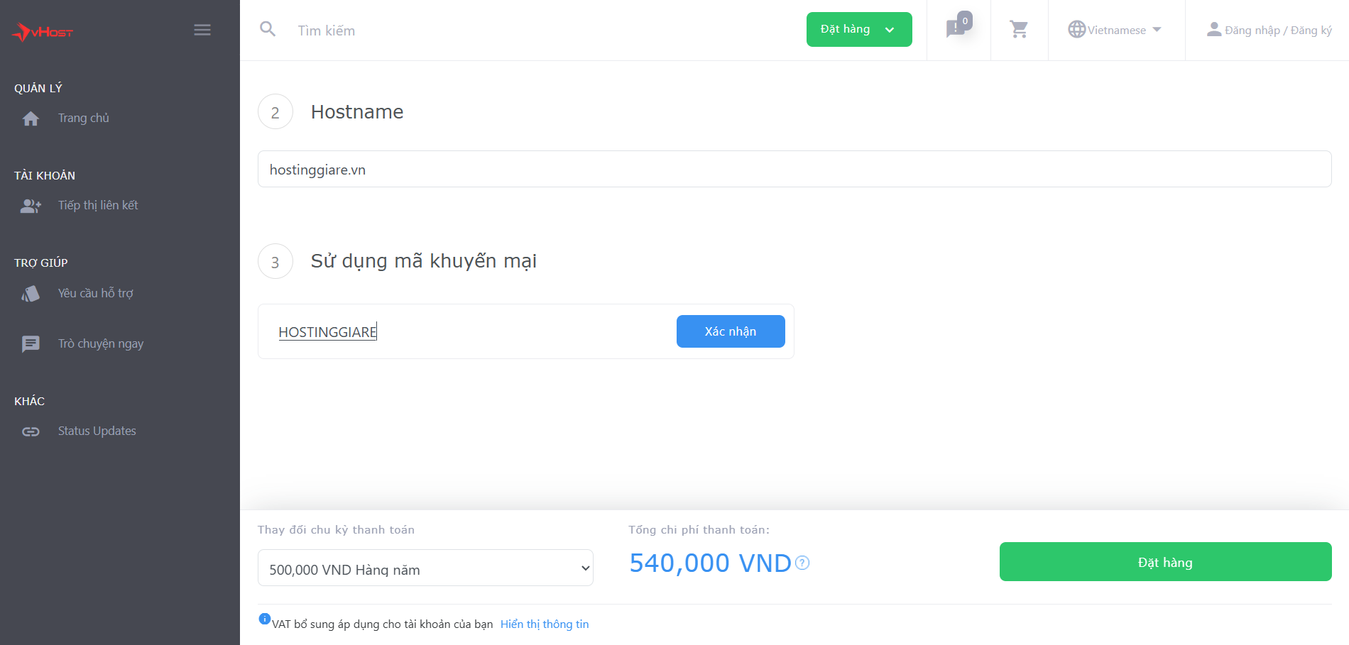 Bước 1: Luôn kiểm tra các chương trình khuyến mãi hiện hành của vHost
