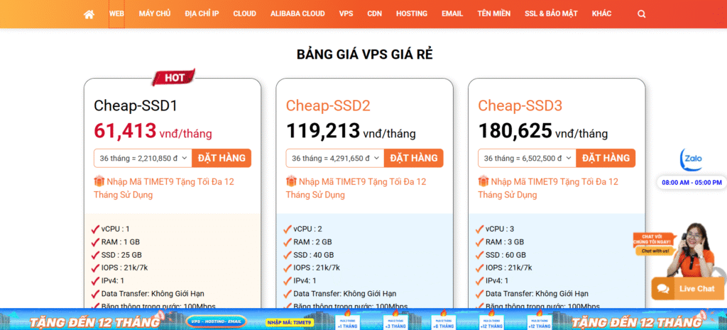 • Áp dụng cho: VPS Giá Rẻ, VPS Cao Cấp, VPS NVMe, VPS Windows và các loại VPS chuyên dụng khác.