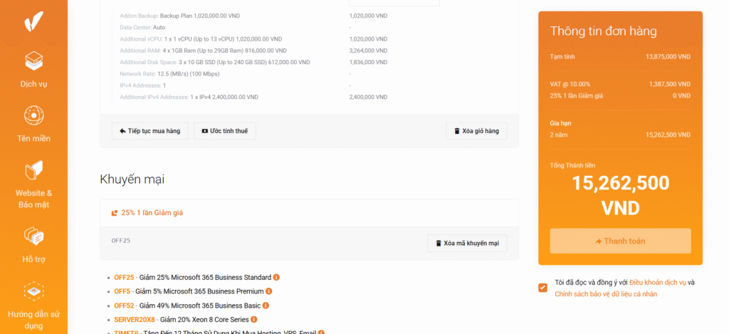 Hướng dẫn chi tiết cách áp dụng mã giảm giá VinaHost