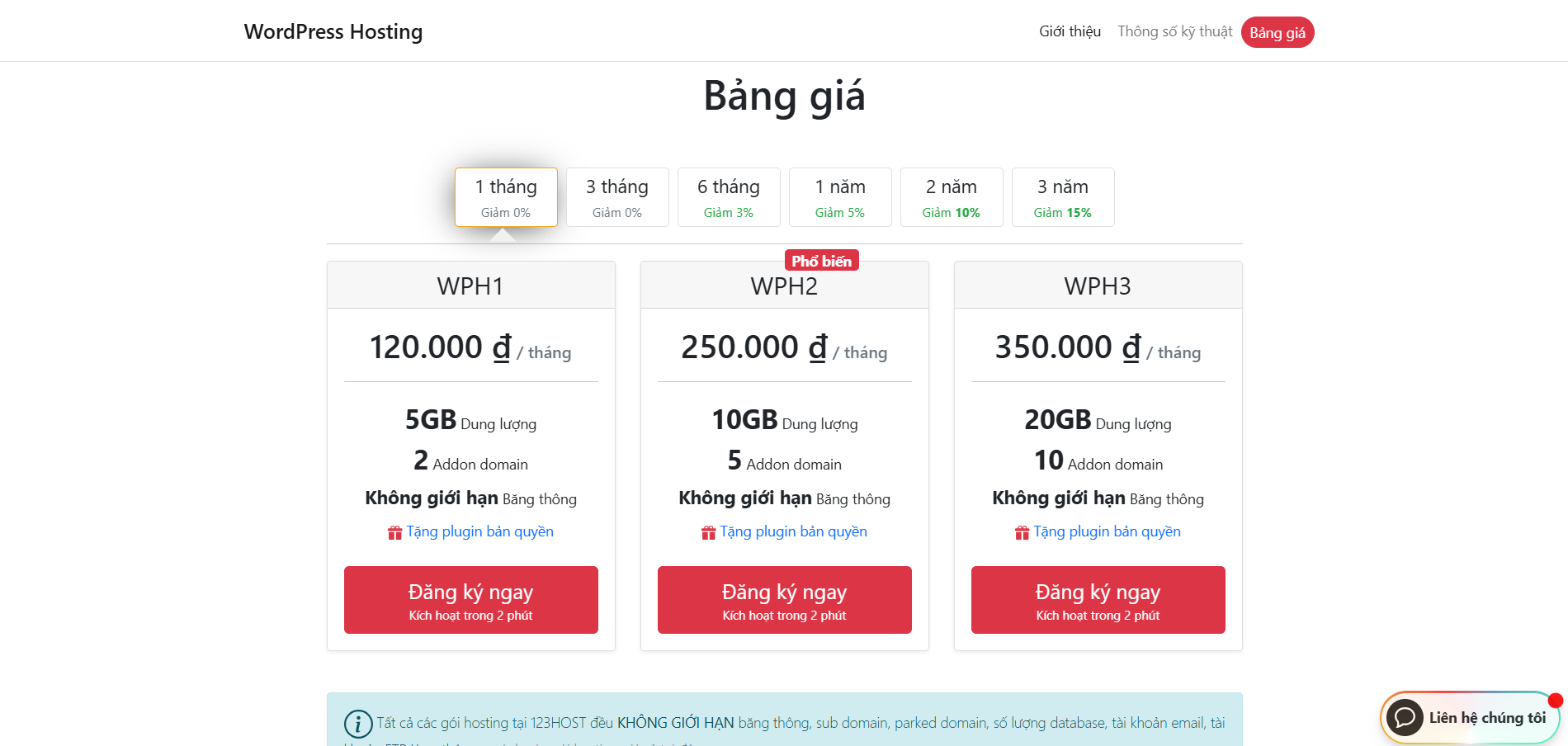 Với mức giá từ 120.000đ/tháng, WordPress Hosting của 123HOST cung cấp một giải pháp toàn diện cho các trang web WordPress.
