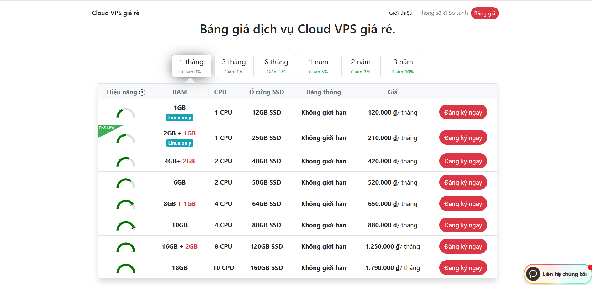 • Nhược điểm: Giá thành cao hơn đáng kể so với các gói Cloud VPS giá rẻ, có thể cung cấp tài nguyên “dư thừa” đối với các website nhỏ hoặc dự án có nhu cầu thấp.