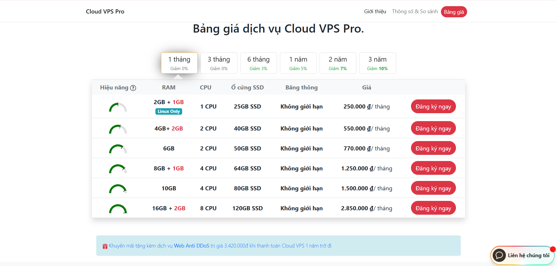 Với mức giá từ 450.000đ/tháng, Cloud VPS Pro mang lại sự an tâm tuyệt đối cho người dùng.