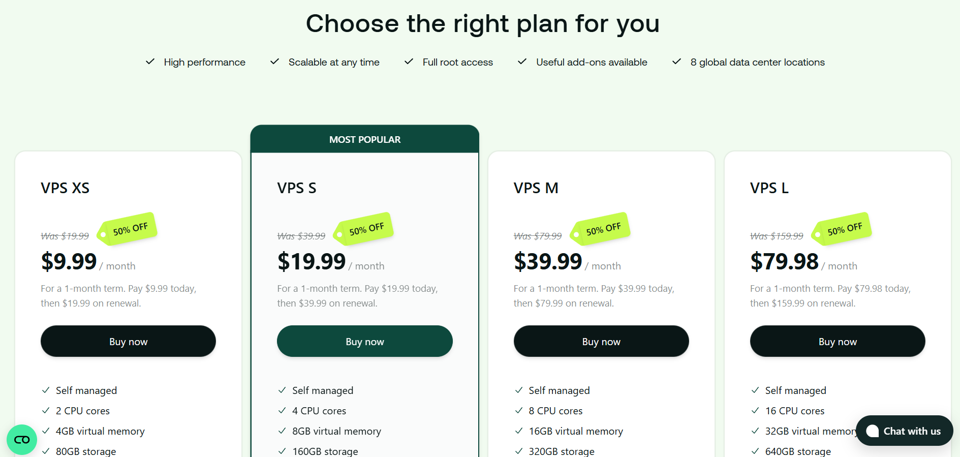 Dành cho các dự án có nhu cầu cao hơn về tài nguyên và quyền kiểm soát. VPS của A2Hosting sử dụng ổ cứng NVMe SSD, CPU Intel Xeon/AMD EPYC mạnh mẽ. Khách hàng có thể lựa chọn giữa Managed VPS (có đội ngũ kỹ thuật A2Hosting quản lý hệ thống) hoặc Unmanaged VPS (toàn quyền root, yêu cầu kỹ năng quản trị hệ thống từ phía người dùng). Các tính năng như firewall, snapshot, backup theo lịch và tùy chọn panel cPanel/Plesk đều có sẵn.