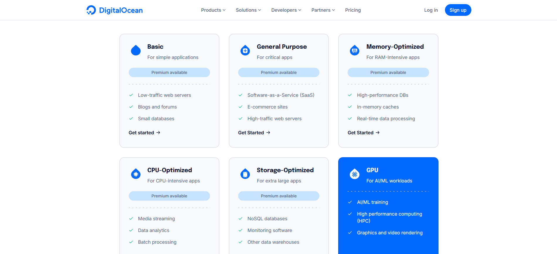 - Hạn chế: Mức giá của High CPU Droplets cao hơn đáng kể so với gói cơ bản. Băng thông miễn phí vẫn có giới hạn và các tiện ích nâng cao khác thường tính phí riêng. Việc quản trị gói này cũng đòi hỏi kỹ năng hệ thống tốt hơn để tận dụng tối đa hiệu suất.