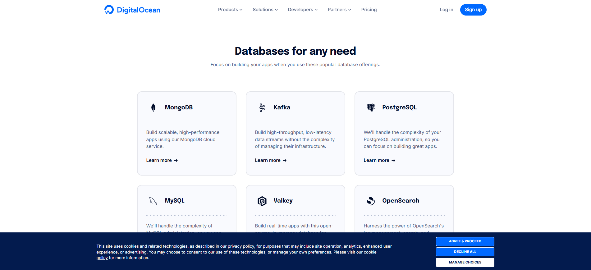 Ngoài Droplets và Kubernetes, DigitalOcean còn cung cấp các giải pháp lưu trữ và cơ sở dữ liệu chuyên biệt, giúp bạn xây dựng một hạ tầng hoàn chỉnh và linh hoạt.
