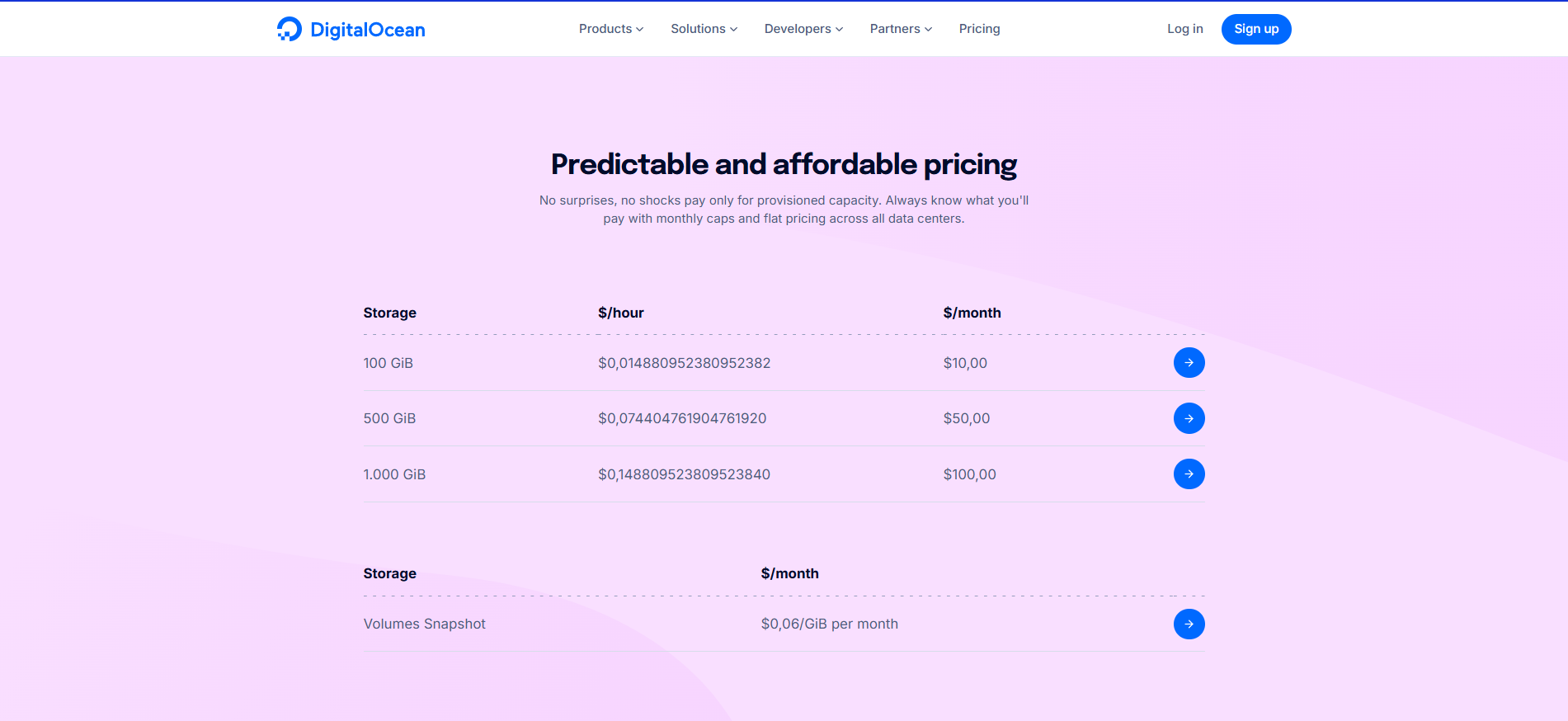 - Hạn chế: Dịch vụ này được tính phí riêng (từ 1 USD/10GB/tháng) và không đi kèm với Droplets. Bạn có thể cần cấu hình mount thủ công cho một số hệ điều hành, và chi phí sẽ tăng nhanh khi bạn lưu trữ dung lượng lớn.