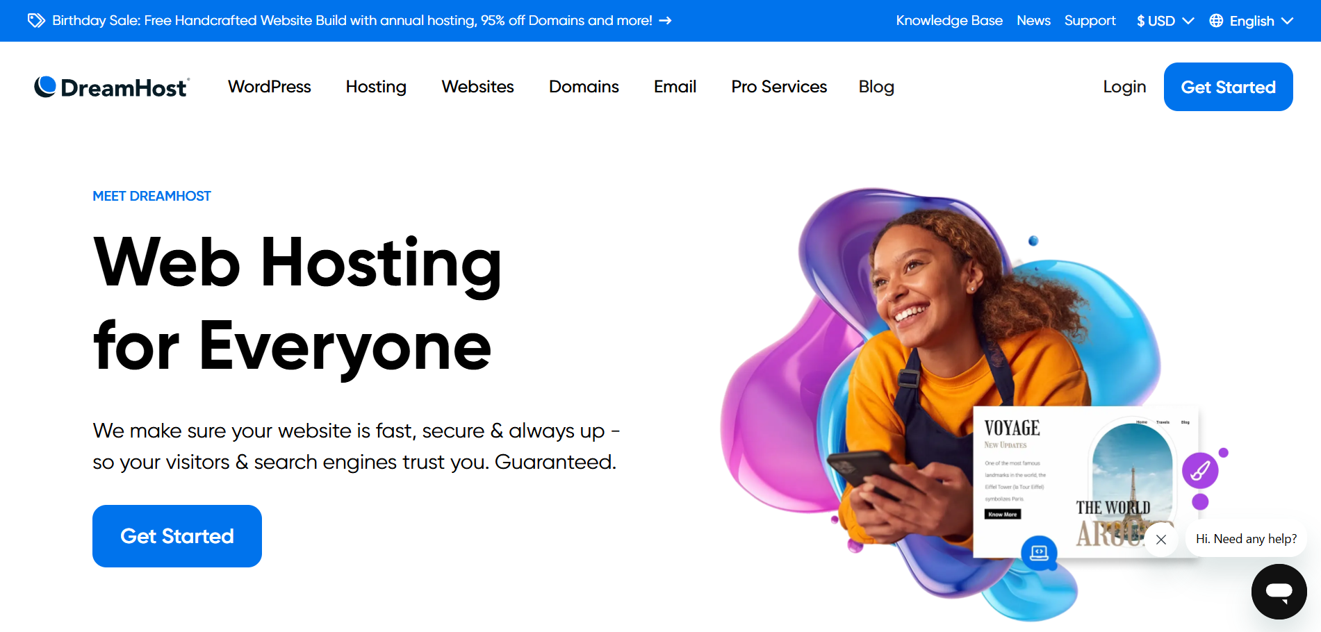 Khi nhắc đến các nhà cung cấp dịch vụ hosting uy tín trên thị trường quốc tế, DreamHost chắc chắn là một cái tên không thể bỏ qua. Được thành lập từ năm 1997 tại Hoa Kỳ, DreamHost đã có hơn hai thập kỷ kinh nghiệm, phục vụ cho hơn 400.000 khách hàng trên khắp thế giới. Điều này không chỉ nói lên quy mô của họ mà còn là minh chứng rõ ràng cho sự chuyên môn và độ tin cậy đã được xây dựng qua thời gian dài.