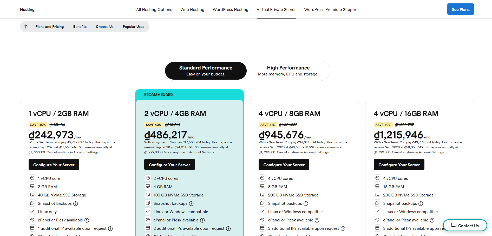 Nếu nhu cầu của bạn vượt quá khả năng của Shared Hosting, GoDaddy cung cấp các gói VPS (Virtual Private Server) với sự linh hoạt và tài nguyên mạnh mẽ hơn.