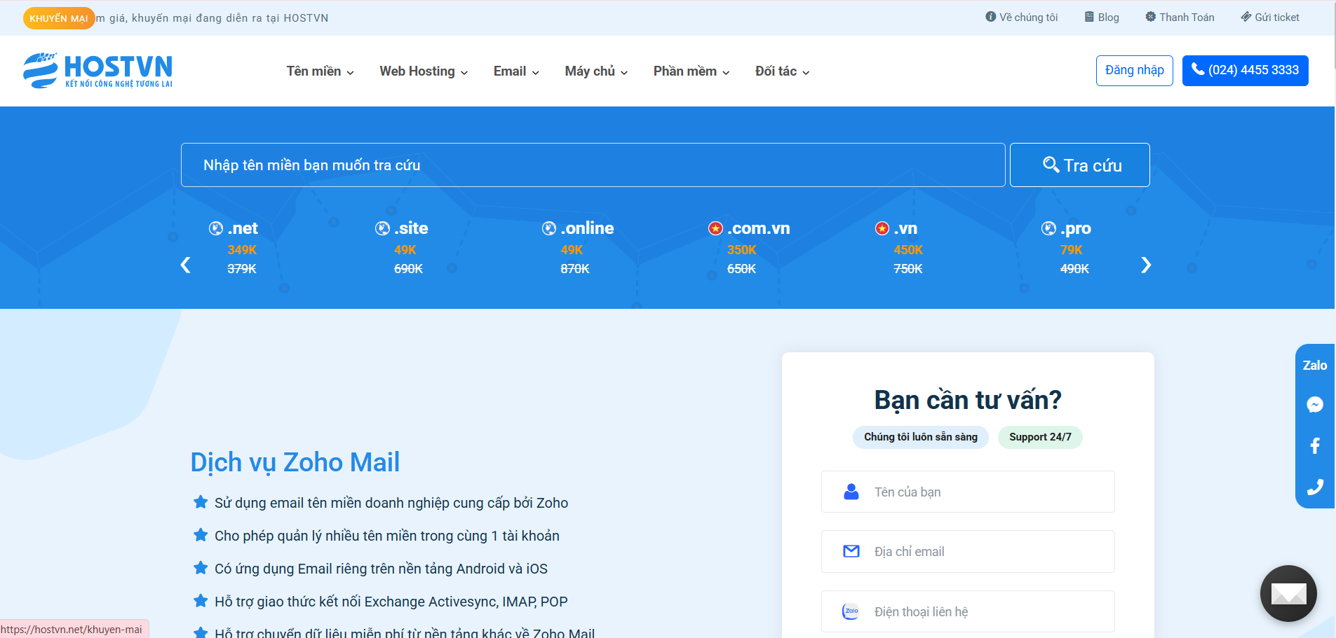- Điện thoại (Hotline): HostVN cung cấp số Hotline 024-4455-3333 để hỗ trợ khách hàng. Đây là kênh quan trọng cho những trường hợp cần giải quyết gấp hoặc muốn trao đổi trực tiếp.