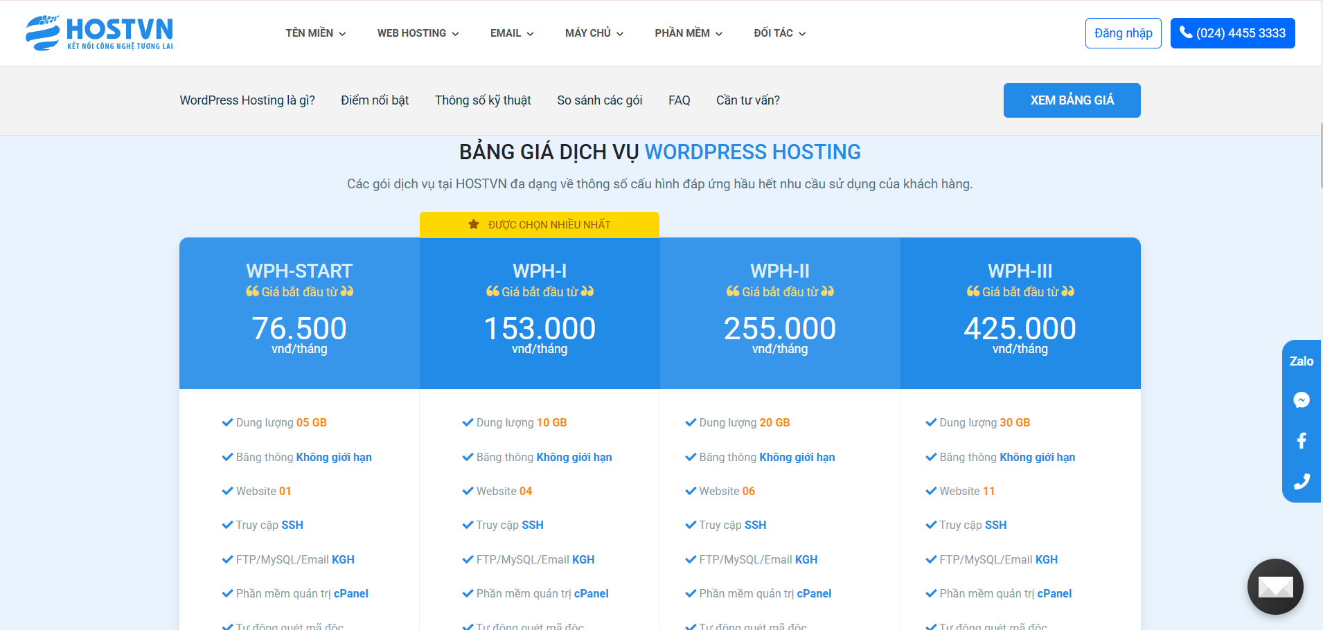WordPress Hosting: Các gói chuyên biệt và giá thành