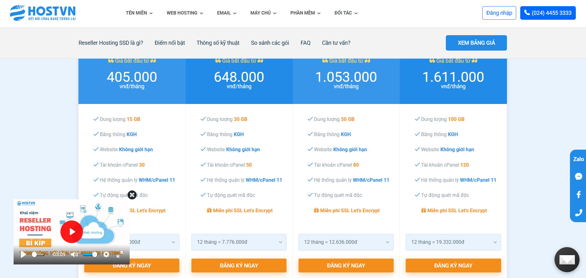 - Reseller Hosting: Dịch vụ cho phép cá nhân/doanh nghiệp tự kinh doanh hosting bằng cách phân phối lại tài nguyên của HostVN.