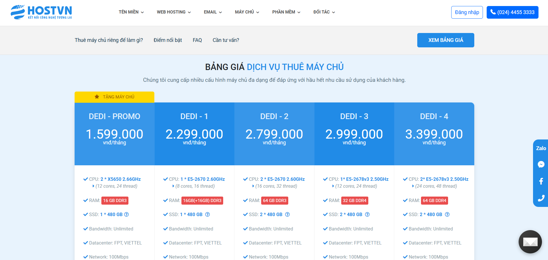 Các bài review không đi sâu vào phân tích giá của Dedicated Server, nhưng đây là dịch vụ cao cấp nhất, thường có giá cao và dành cho các hệ thống lớn.