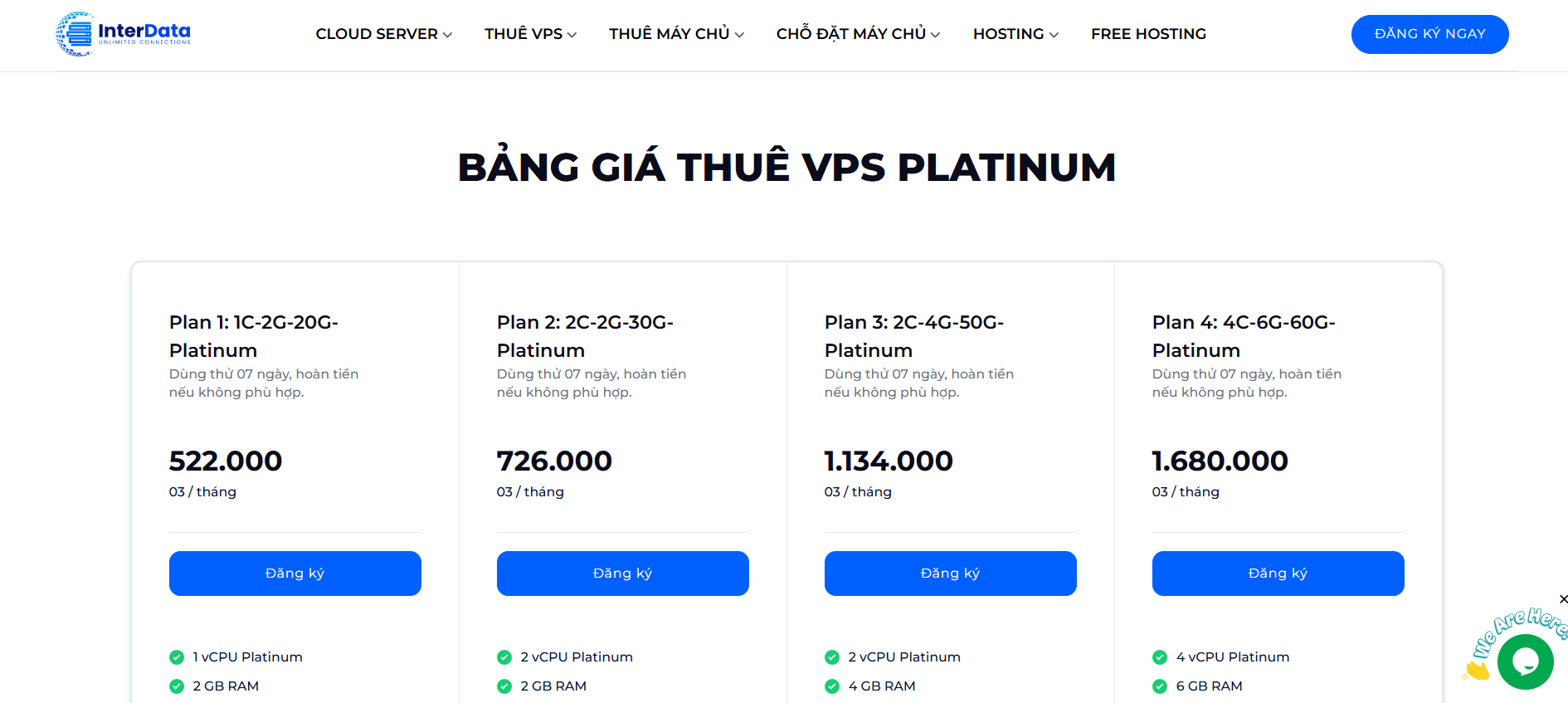 - Giá các gói cao cấp có thể cao so với ngân sách hạn chế: Các dòng VPS Platinum NVMe U.2, VPS Windows hoặc Cloud/Dedicated Server cao cấp của InterData có chi phí đầu tư tương đối cao. Nếu bạn có ngân sách eo hẹp và không thực sự cần đến hiệu năng tối đa của các gói này, có thể bạn sẽ cần tìm kiếm các lựa chọn khác hoặc cân nhắc kỹ về mức độ phù hợp với nhu cầu thực tế của mình.