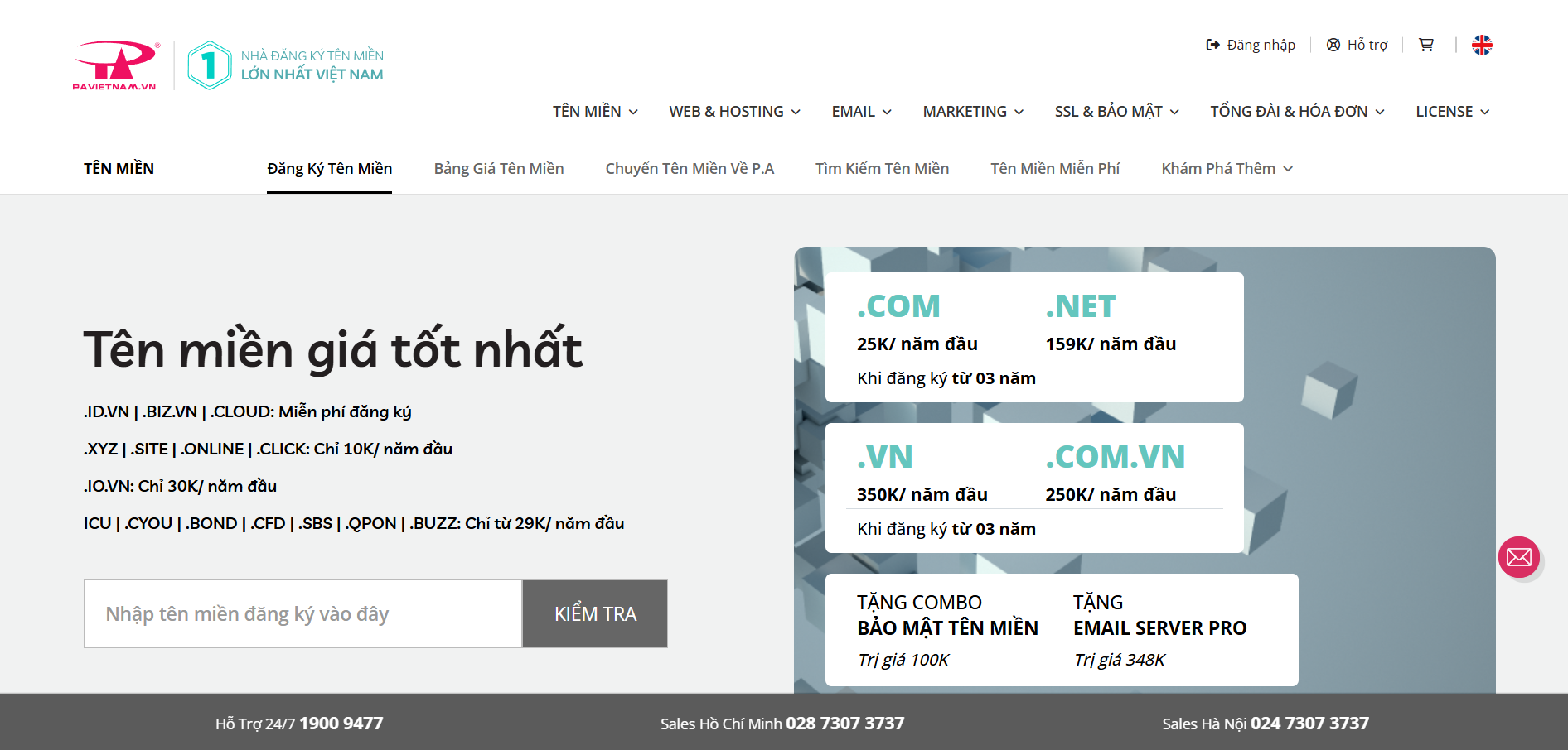 Nhà đăng ký tên miền: PA Việt Nam là một trong những nhà đăng ký tên miền .VN lớn nhất Việt Nam và là nhà đăng ký tên miền quốc tế trực thuộc ICANN. Điều này cho phép khách hàng dễ dàng tìm kiếm, đăng ký và quản lý tên miền cho website của mình một cách thuận tiện và đáng tin cậy.