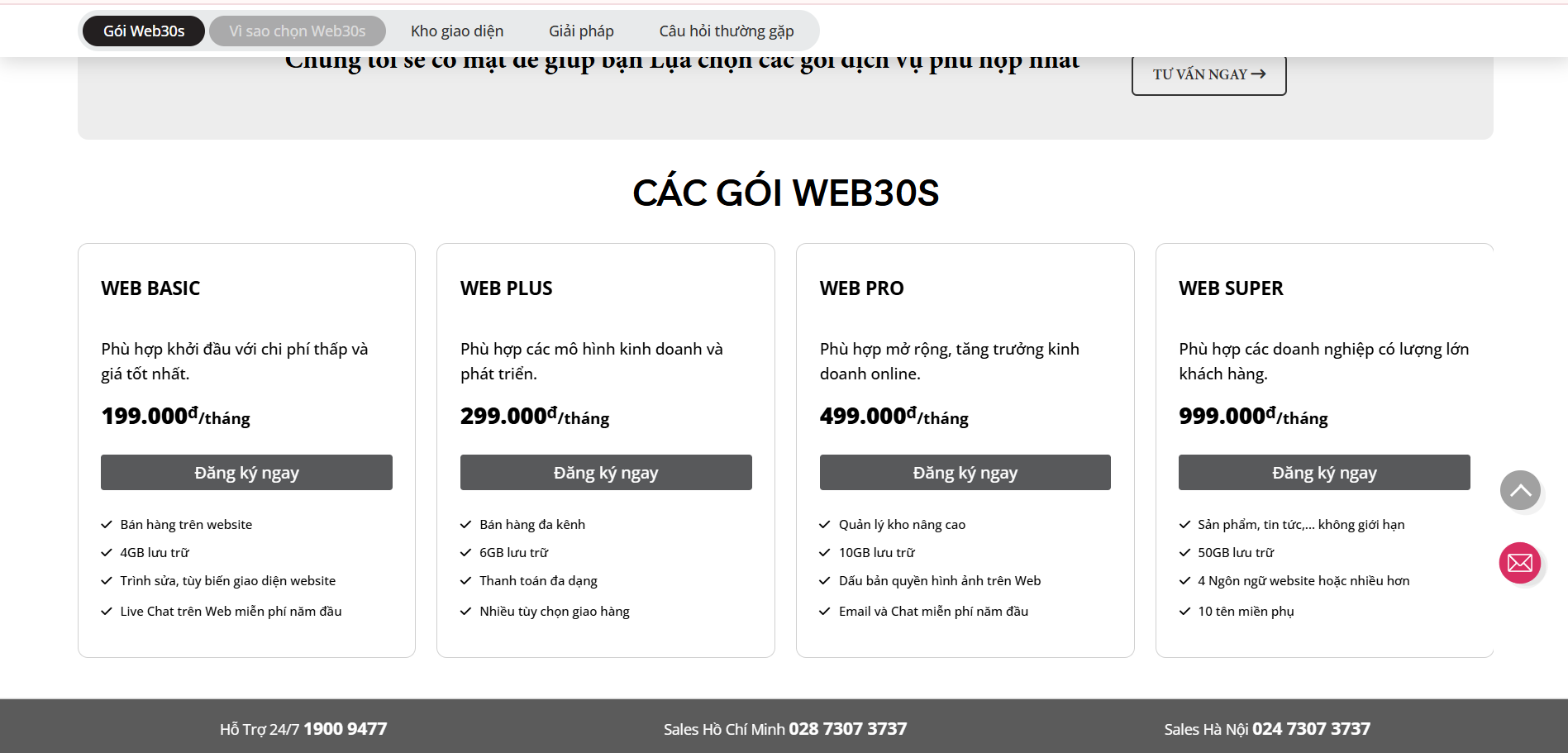 Thiết kế website (web30s): Giải pháp thiết kế website trọn gói, giúp các doanh nghiệp nhanh chóng có được một website chuyên nghiệp mà không cần quá nhiều kiến thức kỹ thuật.