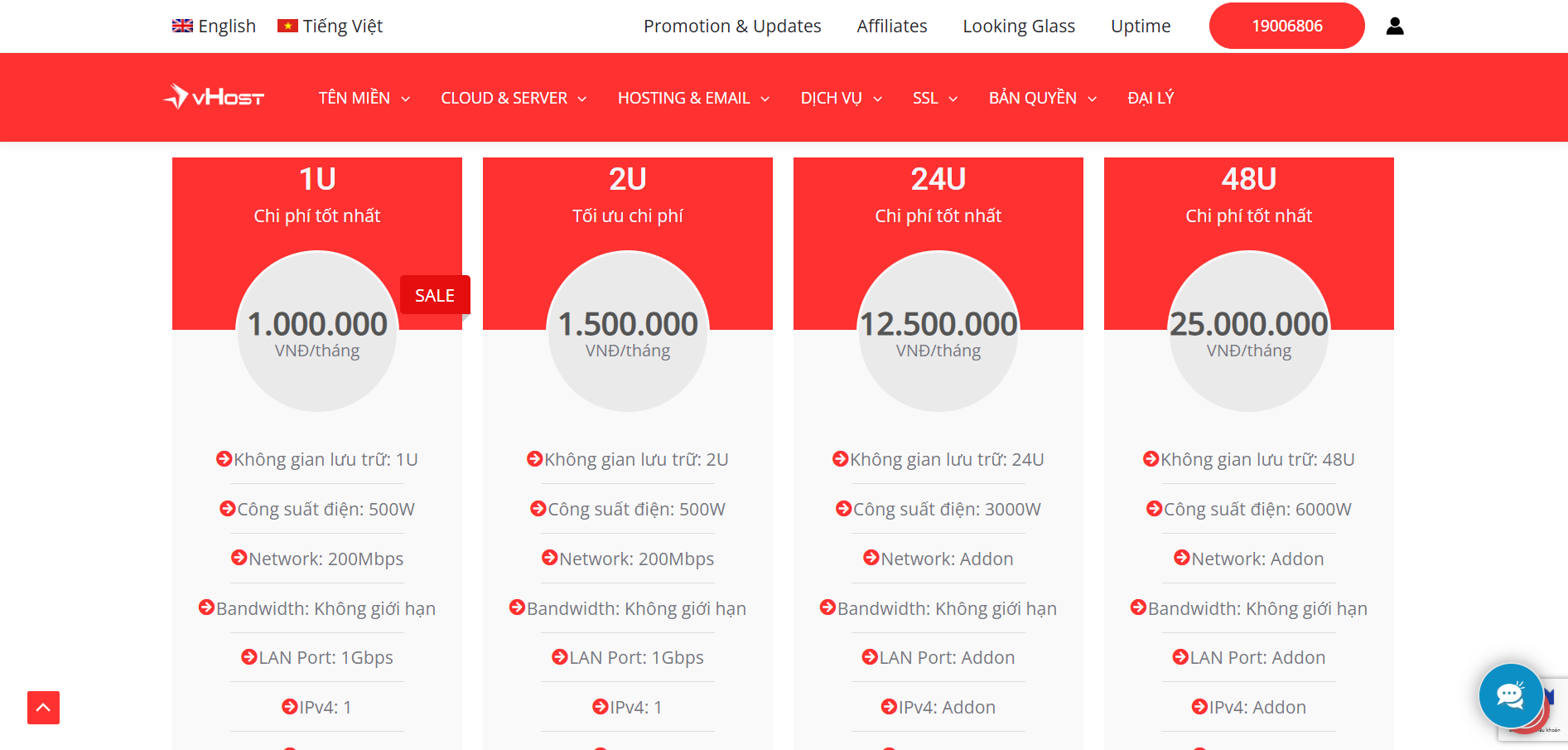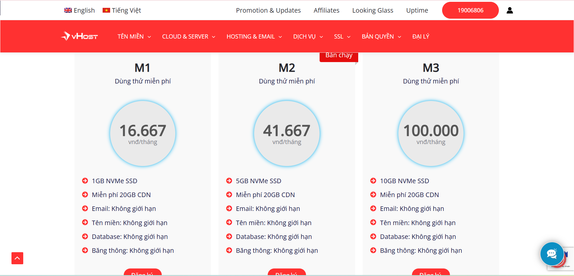 Cung cấp các gói VPS với cấu hình linh hoạt, phù hợp cho những người dùng cần nhiều tài nguyên hơn so với hosting chia sẻ. Mức giá cho VPS Hosting dao động từ khoảng ₫166.219 đến ₫942.399.
