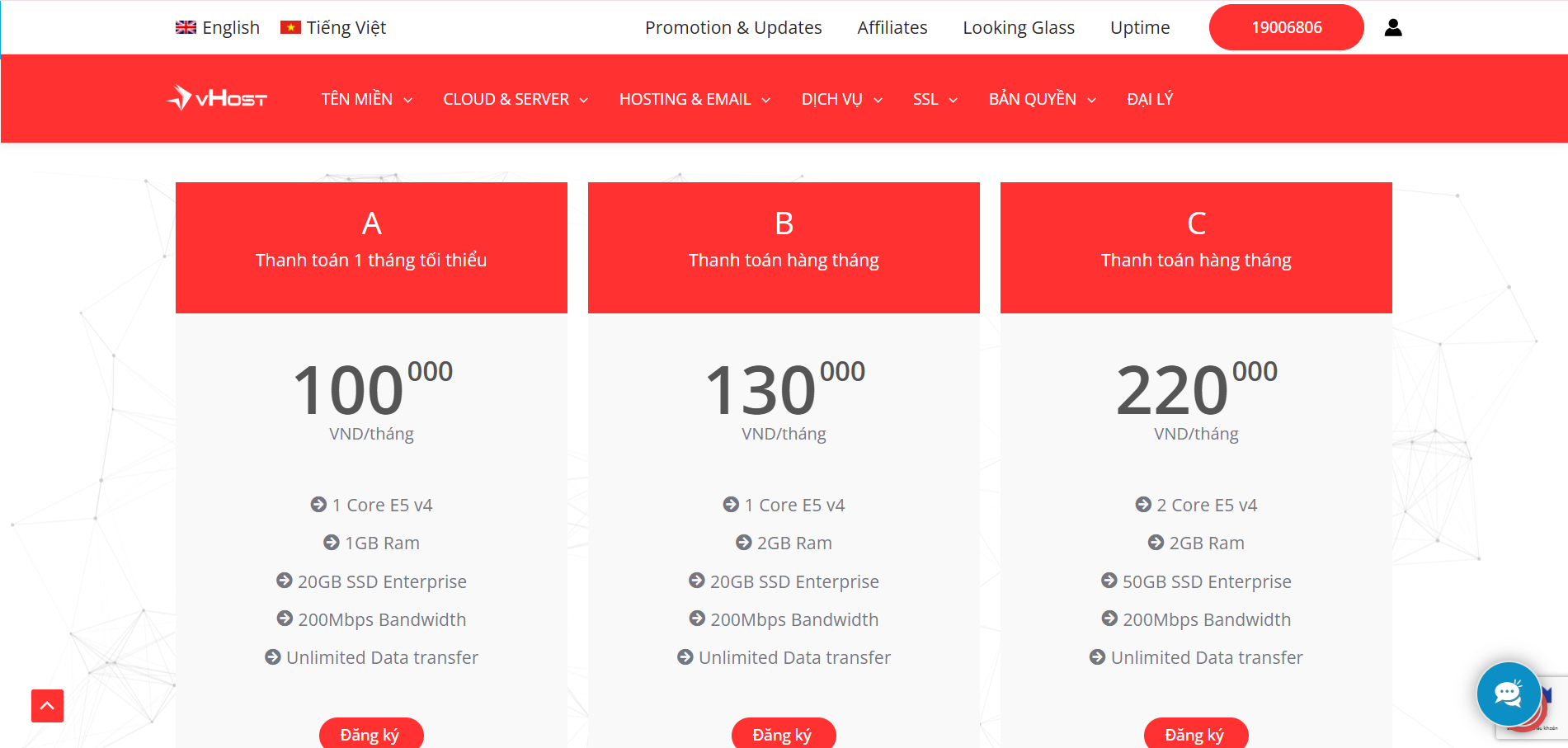 Các gói dịch vụ Hosting, VPS, Server