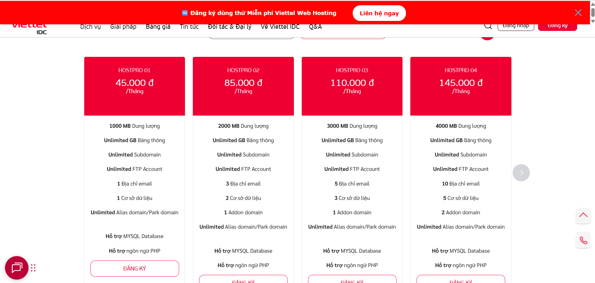 Viettel IDC cung cấp một giải pháp hosting toàn diện, bao gồm cả Web Hosting và Email Hosting.