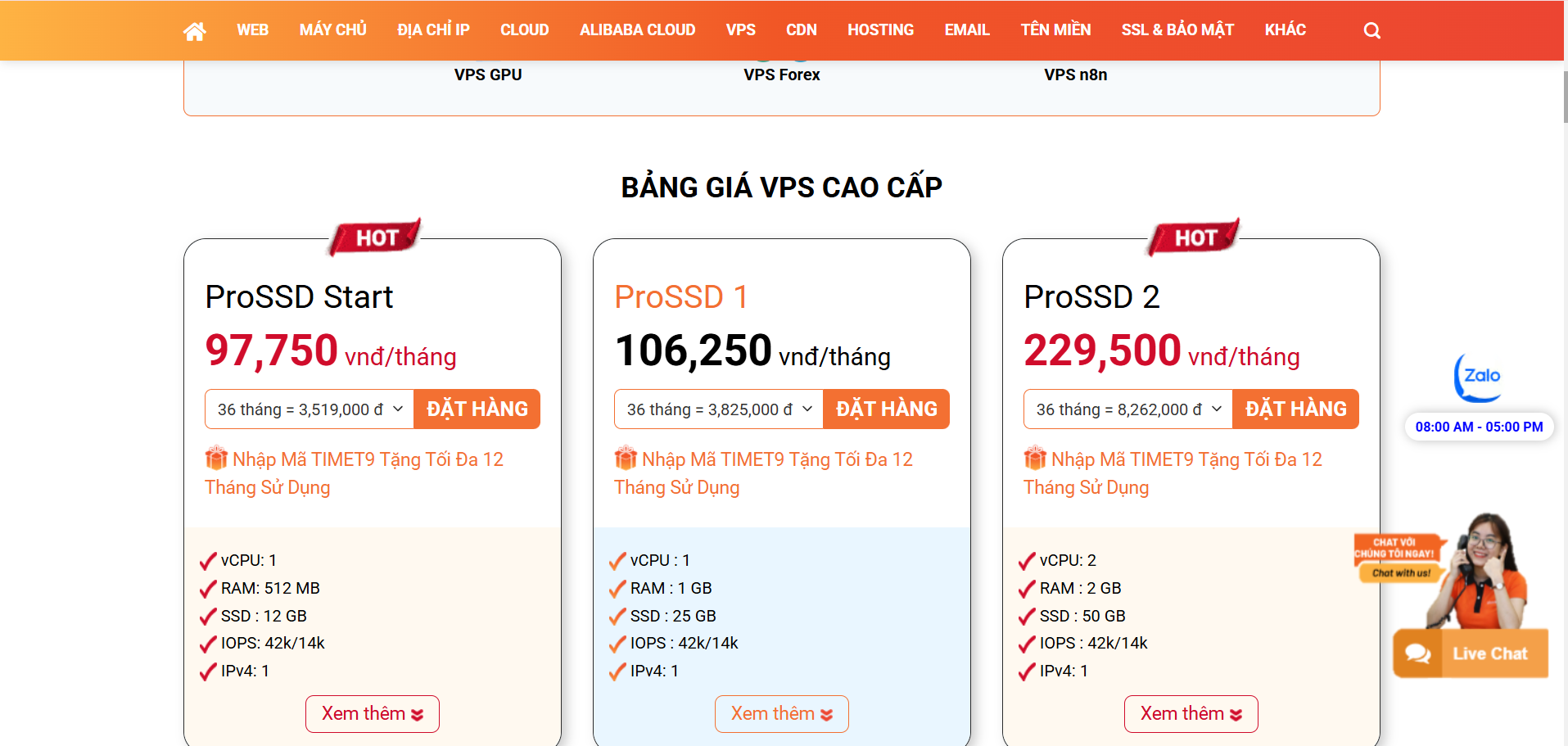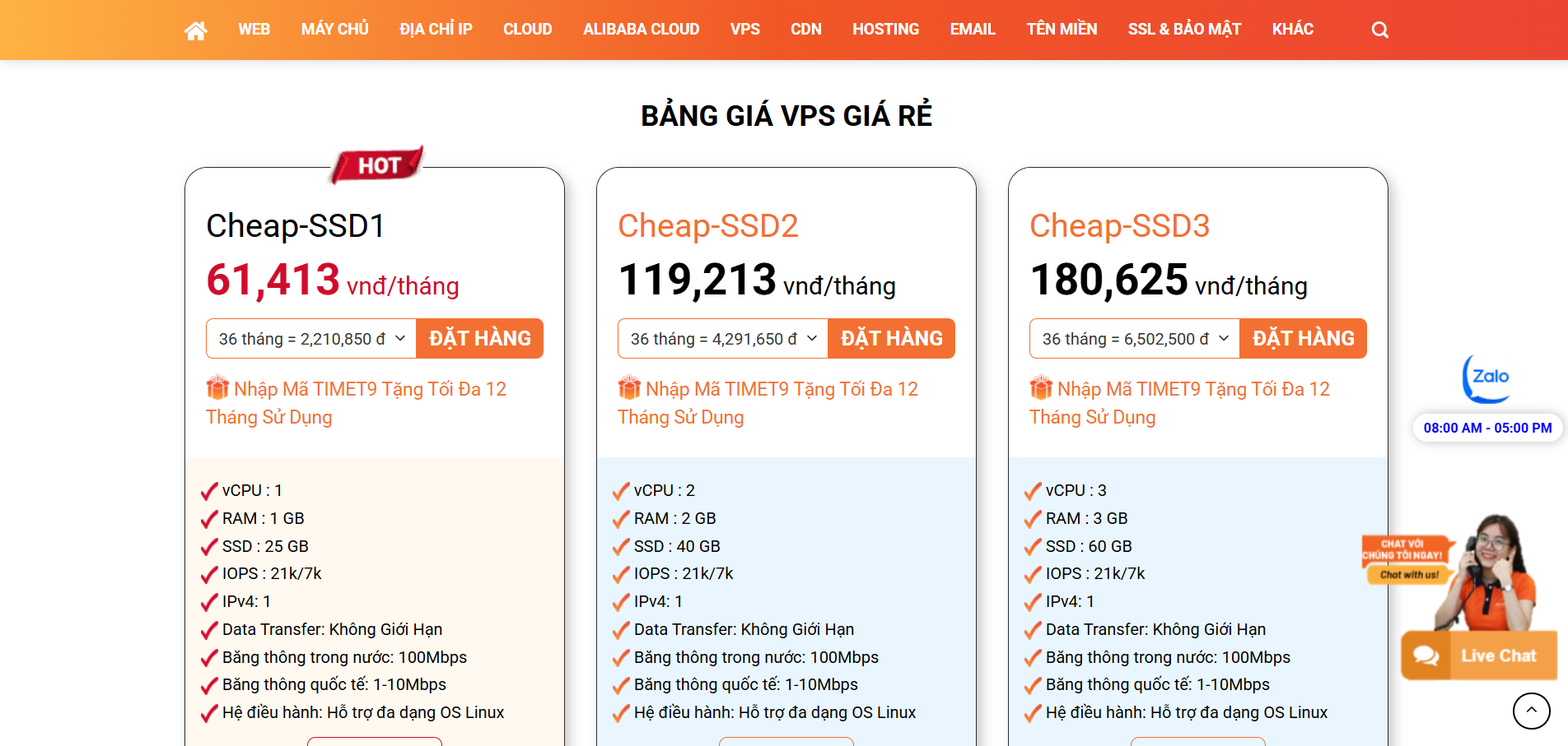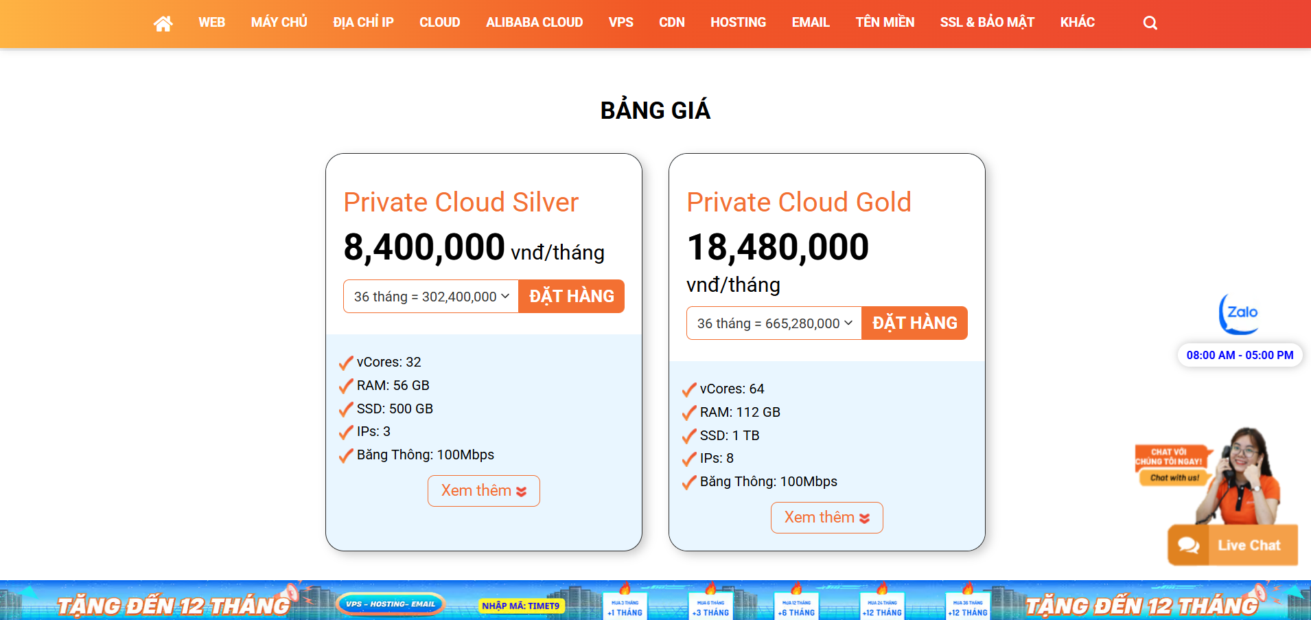 Đa dạng dịch vụ từ hosting giá rẻ, VPS hiệu năng cao đến Private Cloud, đáp ứng đa dạng nhu cầu khách hàng.Một số gói cấu hình thấp không đủ mạnh để chạy mượt Windows OS, cần chọn gói nâng cấp nếu dùng Windows.