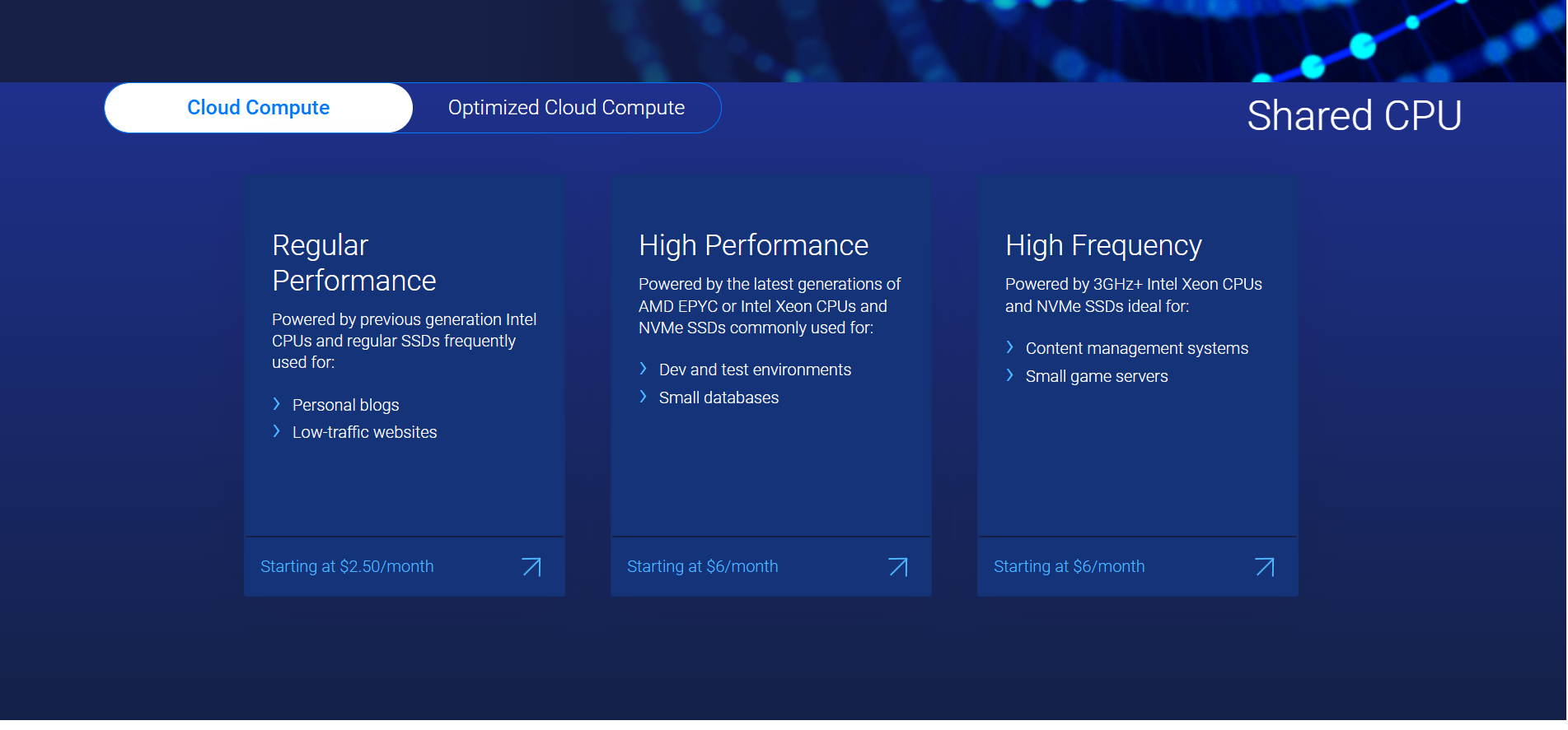 Cloud Compute là gói VPS tiêu chuẩn của Vultr, được xây dựng trên nền tảng SSD NVMe. Đây là lựa chọn lý tưởng cho các cá nhân, startup và doanh nghiệp nhỏ muốn triển khai website, ứng dụng hoặc API cơ bản với chi phí tối ưu.