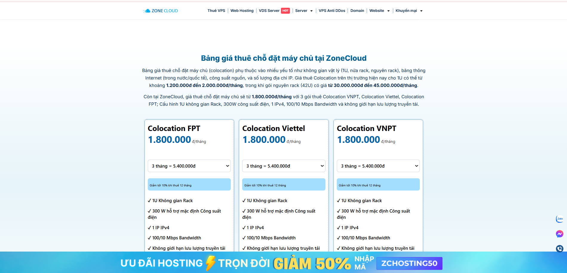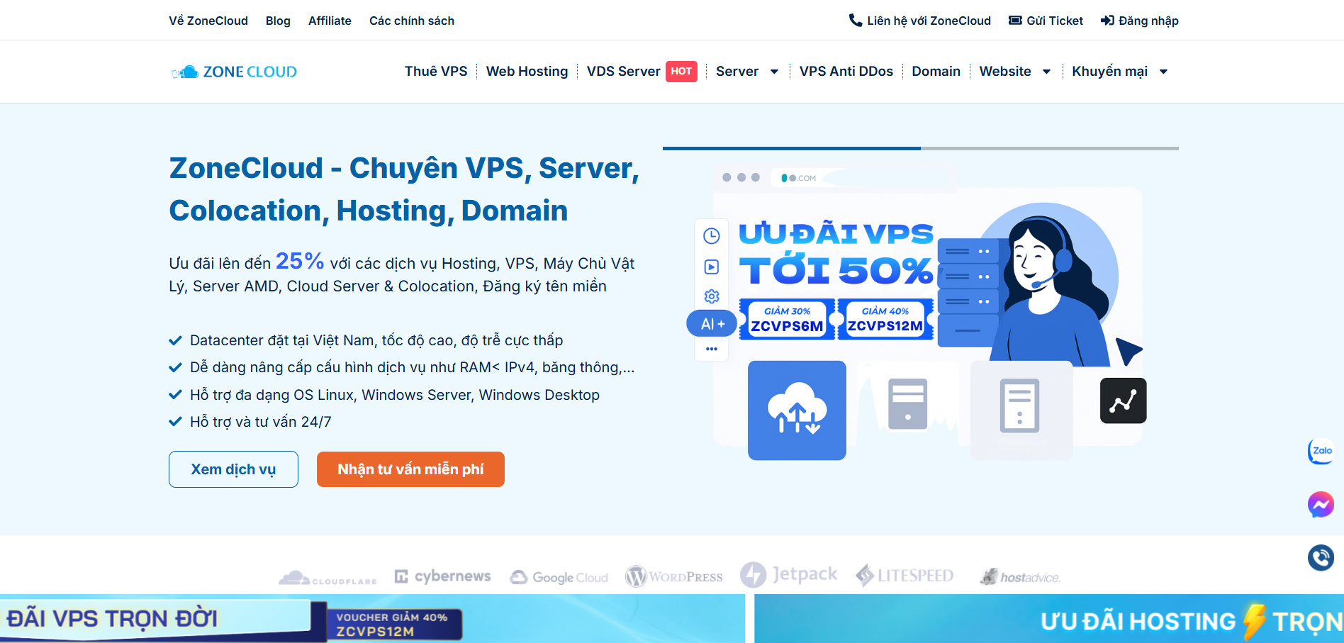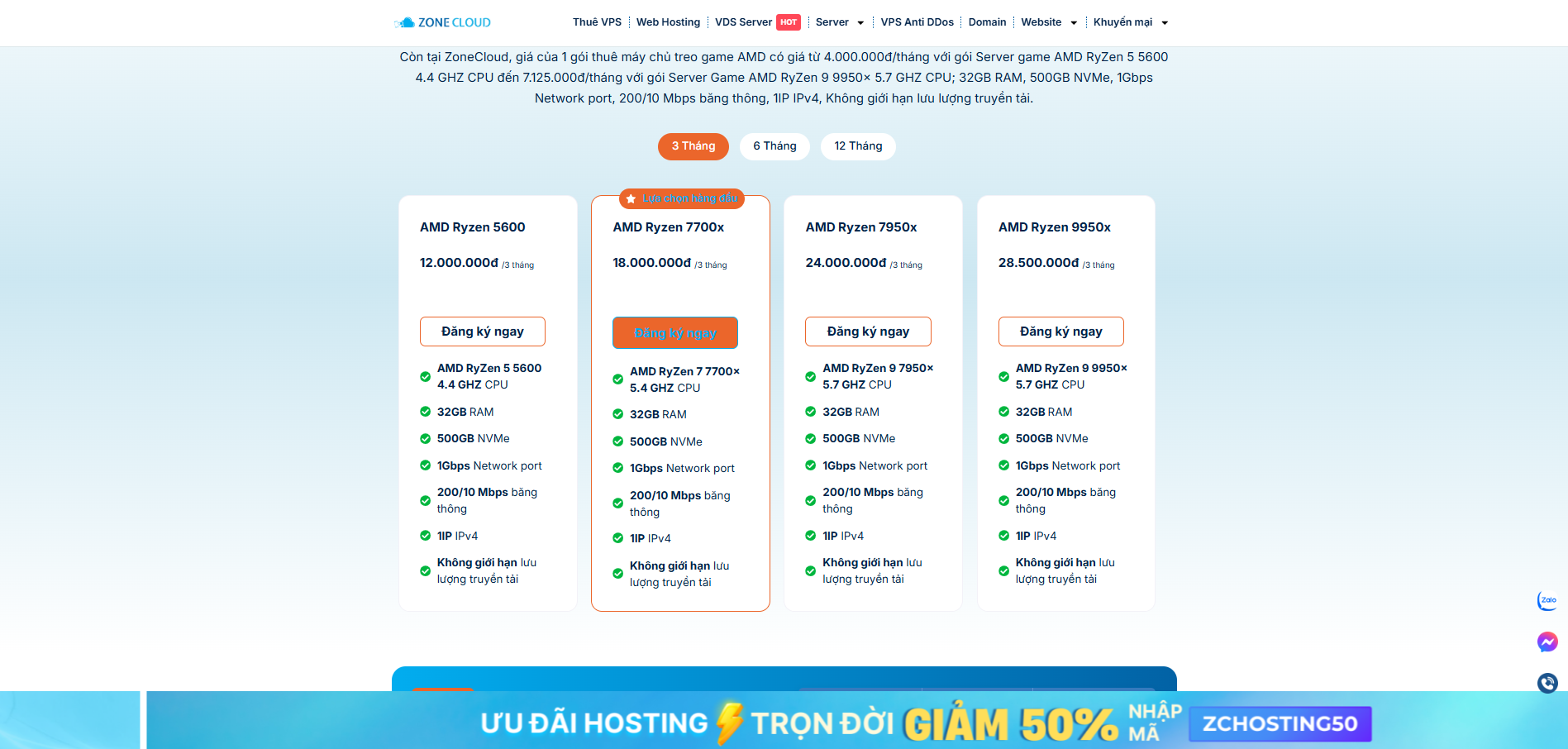 - Giá cạnh tranh và nhiều ưu đãi: ZoneCloud cung cấp các gói dịch vụ với mức giá hợp lý, dễ tiếp cận, đặc biệt là các gói Hosting và VPS cơ bản. Bên cạnh đó, họ thường xuyên có các chương trình khuyến mãi, giảm giá theo chu kỳ thanh toán hoặc tặng thêm tài nguyên, giúp khách hàng tối ưu chi phí.